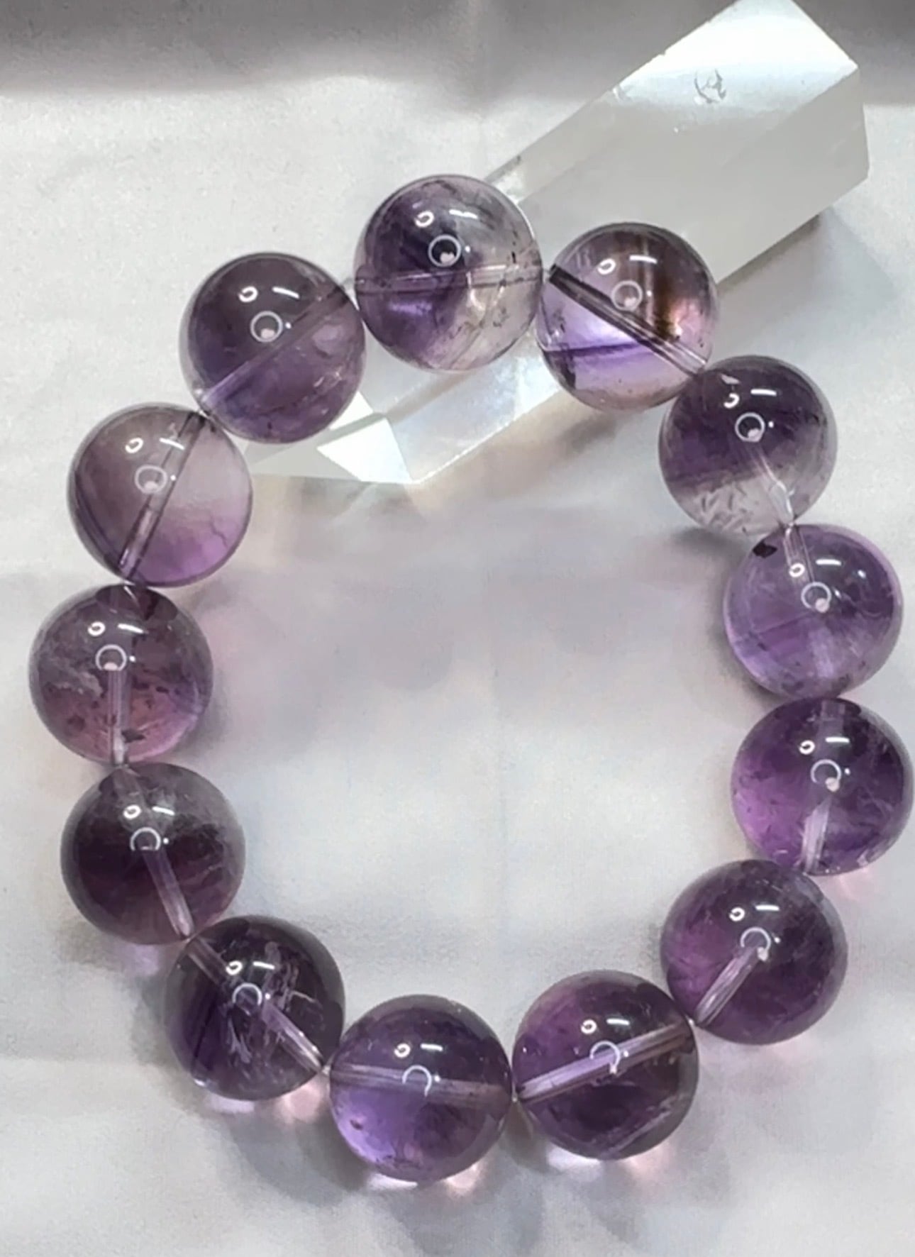 ファントムアメジストは、成長の停滞と再開を経て形成される希少な水晶で、「困難の克服」「再生」「目標達成」の強いエネルギーを持つとされます。アメジストの愛と癒しの力に加え、自己成長、精神的成長、直感力、邪気払い、恋愛成就(真実の愛)を促進する効果が期待されています。